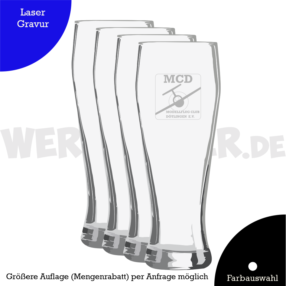 Hochwertiges Weizenbierglas mit Füllstrich und Lasergravur
